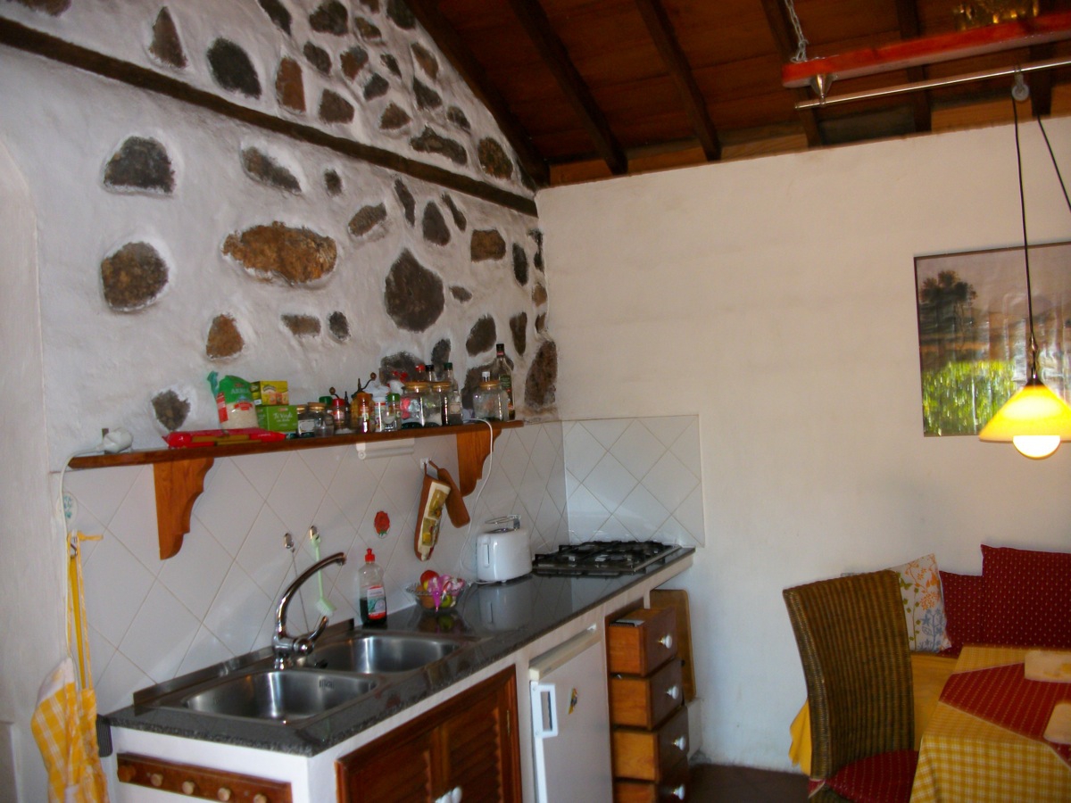 Ideales Haus für Gäste, die gerne ungestörten Urlaub erleben möchten: Das historische Haus ist sanft modernisiert und liebevoll eingerichtet. Es bietet einen Schlafraum mit einer Felswand und direkten Zugang zur Terrasse. Die gemütliche Wohnküche hat einen kl. Kamin und ebenfalls direkten Zugang zur West-Terrasse. Das Duschbad hat einen direkten Meerblick!